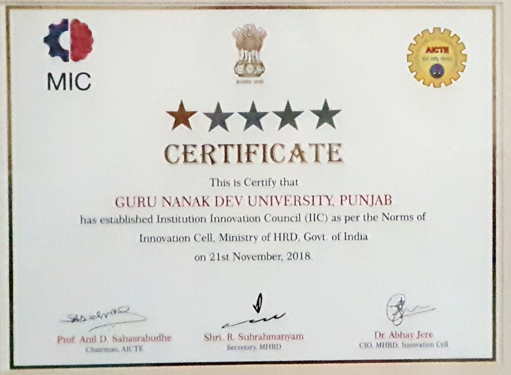 Guru Nanak Dev University has won India's prestigious "Maulana Abul Kalam Trophy" (MAKA) of year 2017-18 with commendable sports achievements of University under the able guidance of Vice Chancellor, Prof. Jaspal Singh Sandhu....Congratulations.)